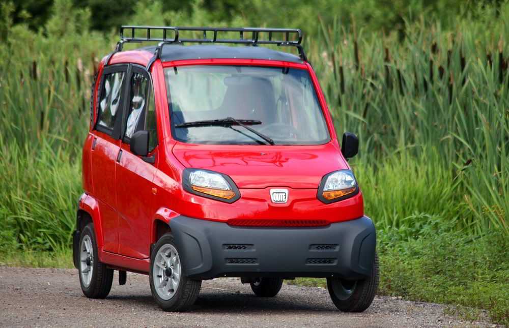 Длина кузова авто 2,75 метра. Технические характеристики Qute не являются неожиданностью. Он укомплектован простеньким одноцилиндровым моторчиком, расположенным над задней осью объёмом 217 кубов и мощностью 13 л. с. Расход топлива по паспорту радует – всего 2,8 л/100 км. Мотор заставит владельца соблюдать скоростной режим в пределах 70 км\ч. По весу Bajaj не дотянул целый килограмм до 400 кг и является привлекательным вариантом в случае, если цена решает всё.