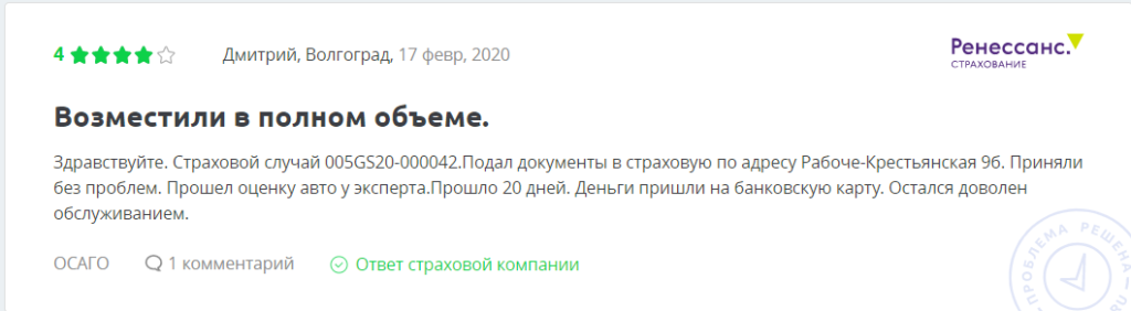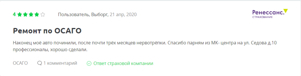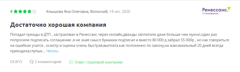 Отзывы на компанию Ренессанс по ОСАГО