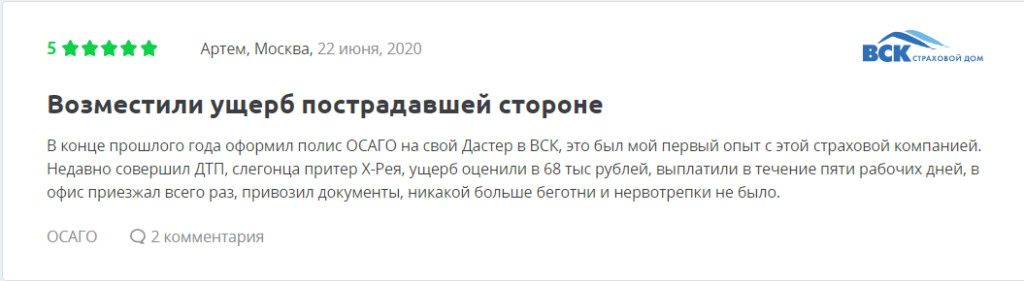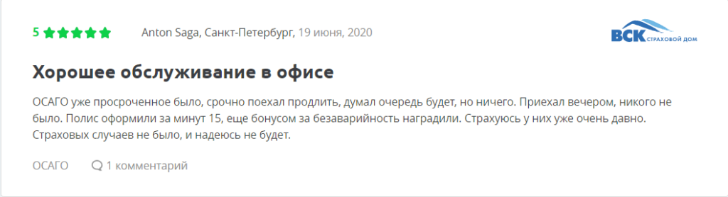 Отзывы на компанию ВСК по ОСАГО