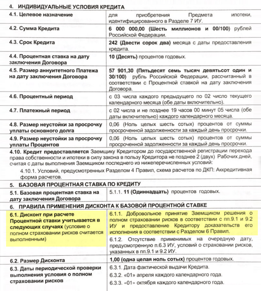 А так выглядит условие о пониженной процентной ставке в ипотечном договоре ВТБ