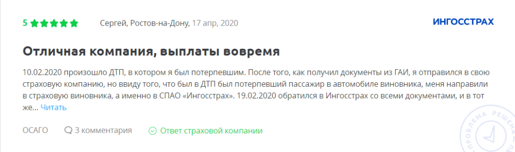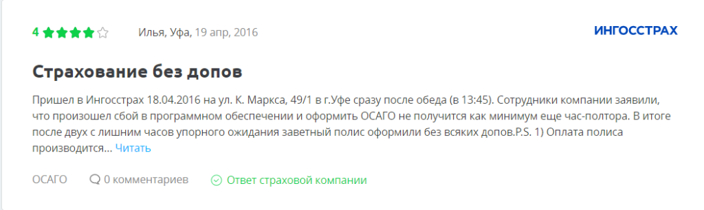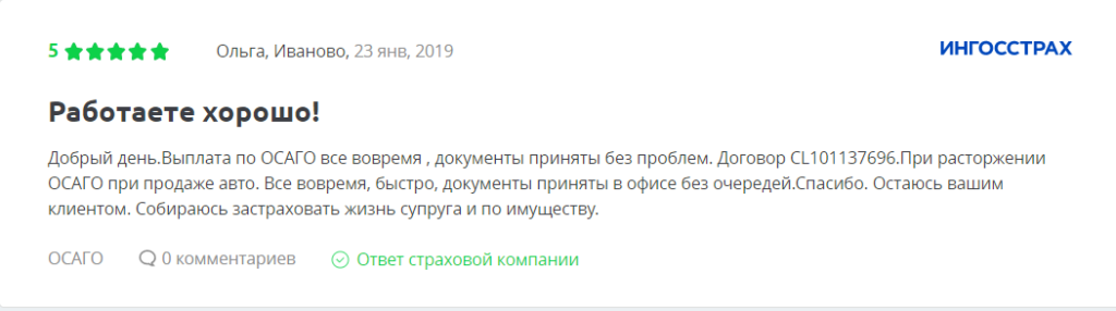 Отзывы на компанию Ингосстрах по ОСАГО