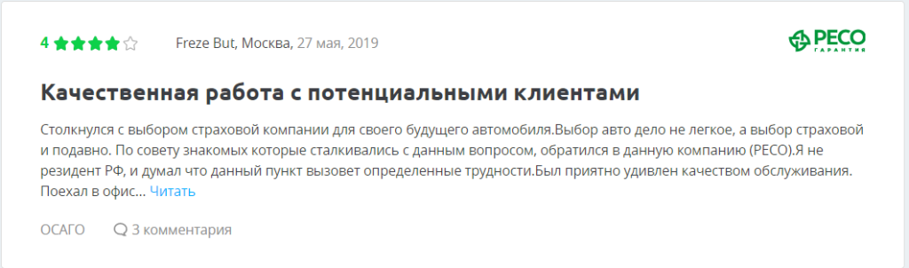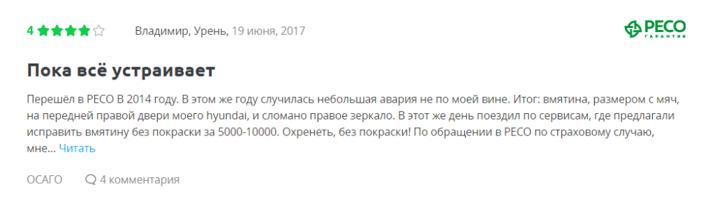 Отзывы на компанию РЕСО по ОСАГО