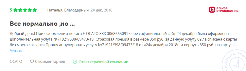 Отзывы на компанию АльфаСтрахование по ОСАГО