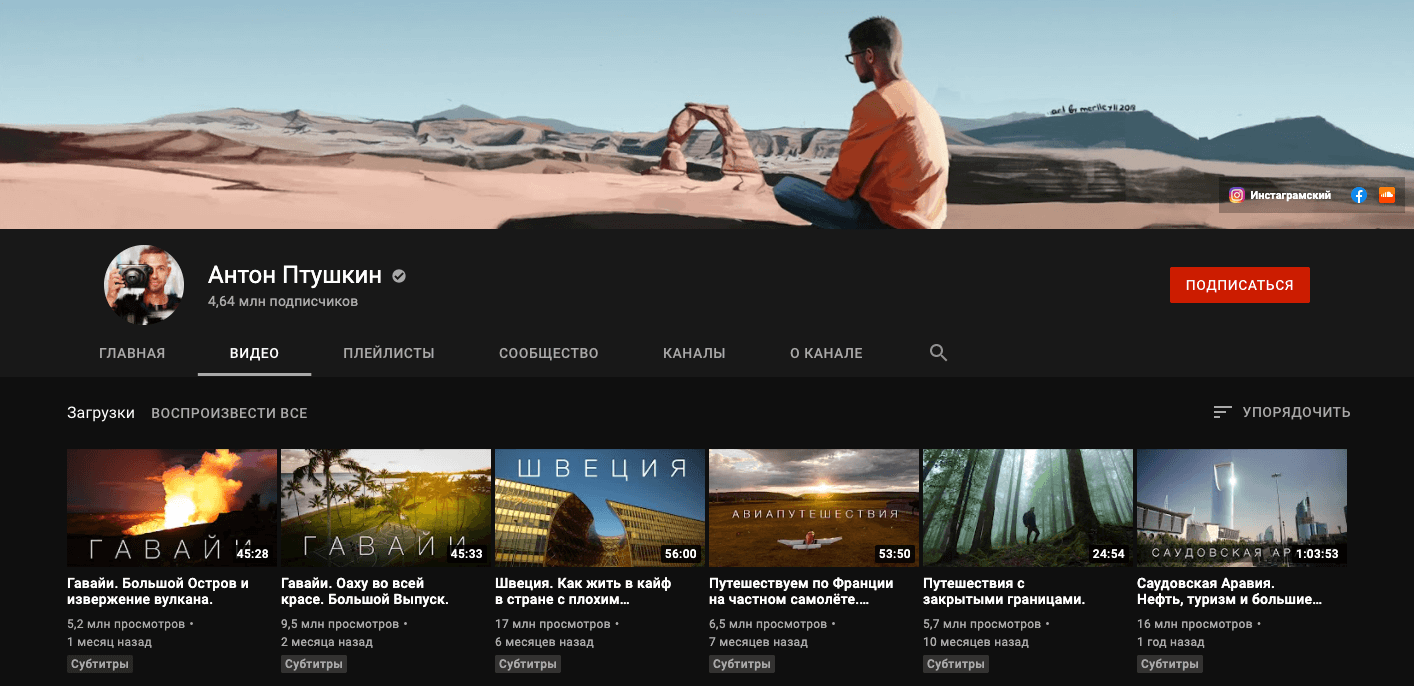 Один из самых популярных и просматриваемых travel-каналов на YouTube — канал Антона Птушкина, бывшего ведущего «Орла и Решки».