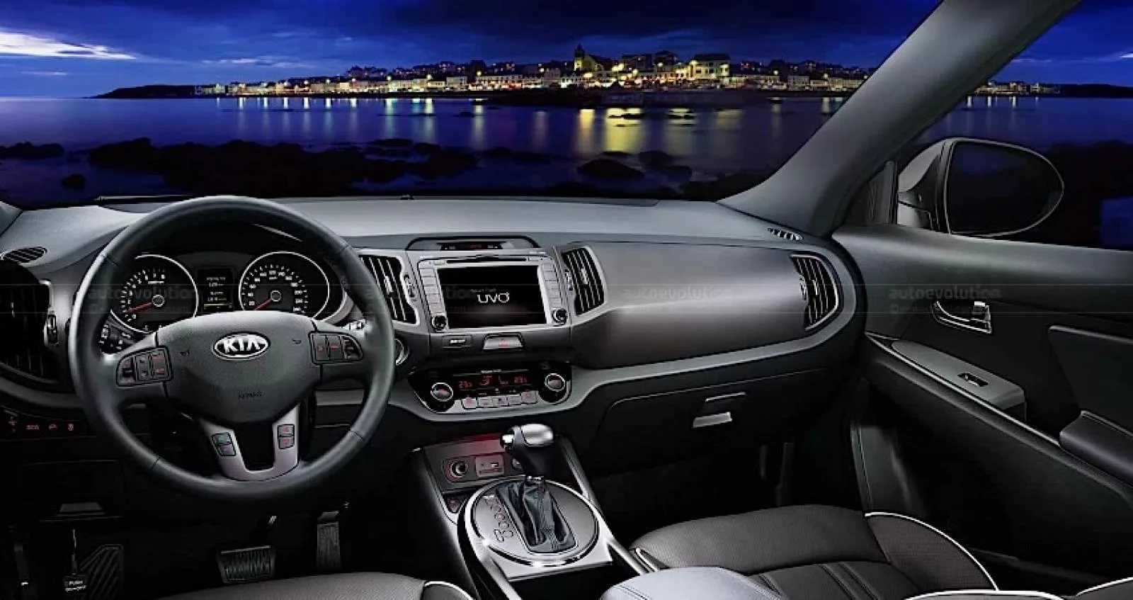 Интерьер: даже базовая комплектация включает в себя кожаные элементы оформления салона, как обтянутая ручка коробки передач и руль. Присутствует мягкая неоновая подсветка и хорошо продуманная эргономика бортовой панели, куда органично вписывается проигрыватель для CD-дисков. Кресла похожи на Хендай ix35, однако, имеют более крупные и продолговатые сидения, высокую спинку. Экран мультимедиа и GPS также очень схож с ix35.