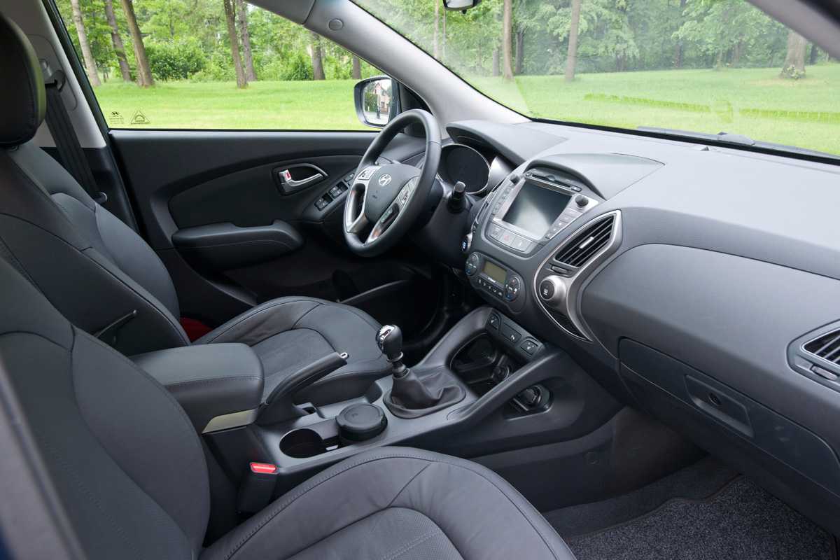 Интерьер обоих автомобилей сдержанный и комфортный. «Спортидж» обладает скорее европейским стилем салона. Практичный, классический, с удобными креслами и скромной панелью. Hyundai ix35 чуть более элегантный, рельефный, но это в некоторых ситуациях скорее минус, чем плюс. Панель у «Хендай» такой формы, что дает сильные блики и мешает видимости приборов.