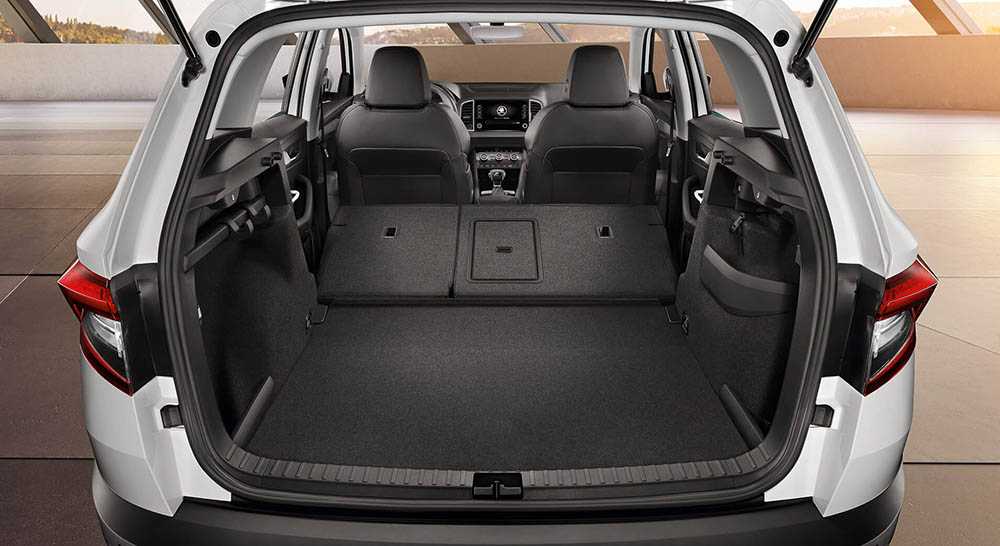 Багажник Skoda Karoq получил правильную форму, а также качественную отделку. При этом объём пространства составит 521 литр в обычном положении и 1630 литров при сложенном заднем диване. Если взять версию с раздельными креслами и сдвинуть их до упора вперёд, тогда багажник и вовсе увеличится до 1810 литров.