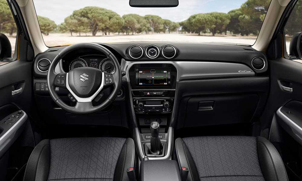 Салон Vitara далеко не роскошный. Но и дешёвым его назвать нельзя. В дорогих комплектациях даже встречается местами кожа.